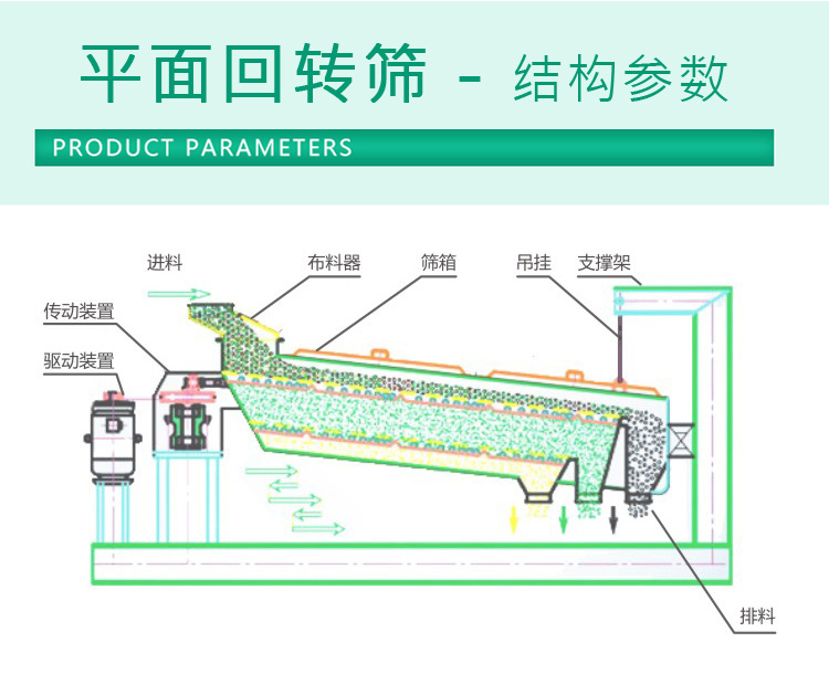 平面回轉(zhuǎn)篩相比于傳統(tǒng)直線振動(dòng)篩,篩分效率進(jìn)一步提升,其采用了平面回轉(zhuǎn)運(yùn)動(dòng)的原理,降低了設(shè)備的動(dòng)靜比和基礎(chǔ)動(dòng)載荷,篩分面積更大,噪音更小,篩網(wǎng)壽命更長(zhǎng),廣泛應(yīng)用于化工、建材、糧食等行業(yè)。